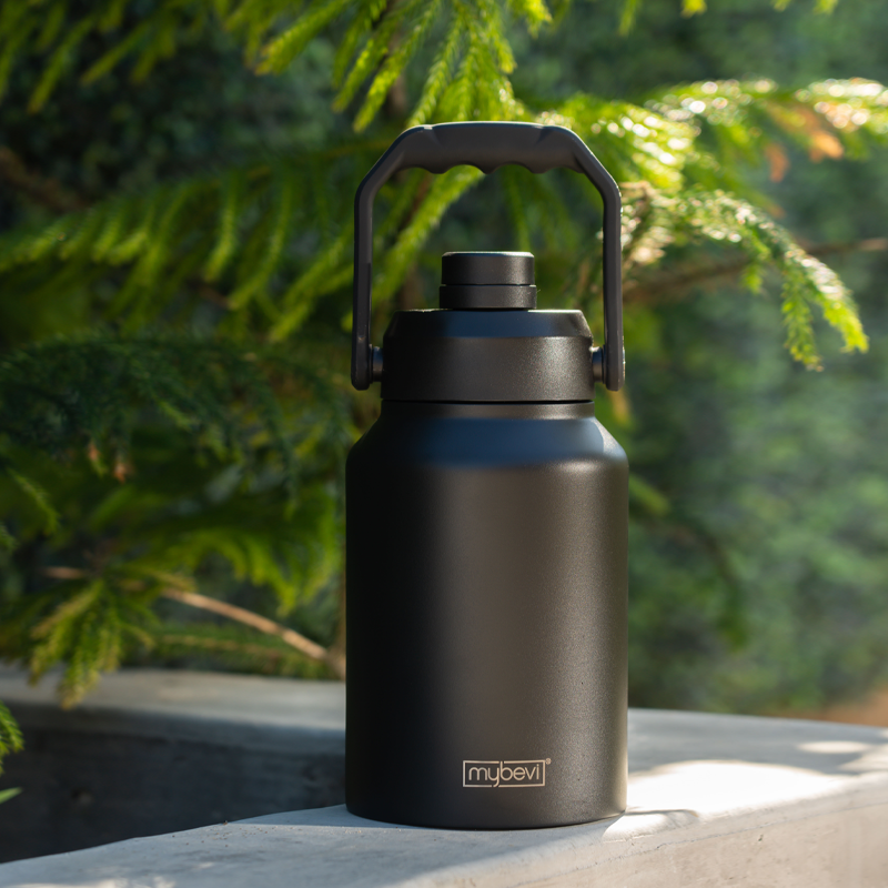 Quench the biggest thirst with the Big Bevi! This massive 64 oz. jug is built tough with superior stainless steel construction and a durable powder coat finish. Featuring triple-layer insulation, it keeps drinks cold for 24 hours or hot for 12. The leak-proof lid and large carry handle make it the ultimate companion for boating, camping, tailgating, or any adventure.
